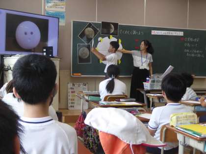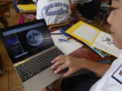 6年生 理科〜月と太陽〜 公開日 2023/09/15 更新日 2023/09/15 6年生のページ 地球からの月の見え方を学習しました。写真を使って確認した後はGIGA端末を使い実際の見え方を確かめていました。