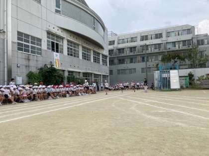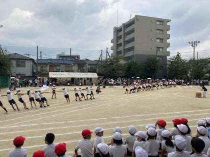 休憩を挟んで5、6年生の出番です。100m走や綱引きをしました。力強かったです。