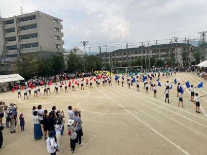最後は6年生によるフラッグです。一人一人の真剣な演技にみんなが感動しました。下級生もみんな憧れの眼差しで見ていました。本当に立派な姿を見せてくれました。