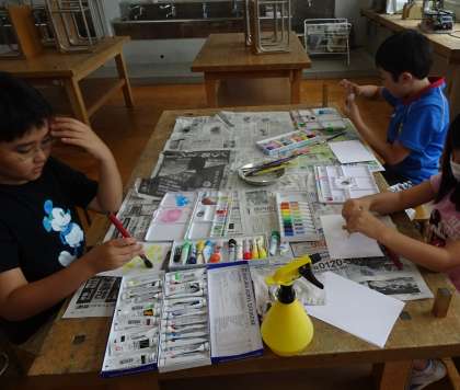 おひさま学級 図工「お話の絵をかこう」 公開日 2023/09/21 更新日 2023/09/21 おひさま学級 お話を聞いて、絵を描く学習を行っています。お話の中には、ジェラートが登場します。今日は、図工室へ行って、スポンジや歯ブラシ、パスや絵の具を使って色々な味のジェラートを描きました。どんな作品になるのか、今後の学習が楽しみです!