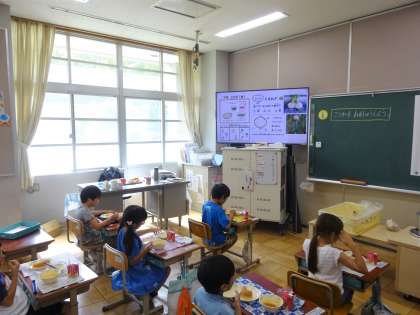 ポークビーンズは、アメリカの料理です。大豆が苦手な子も食べやすいように、玉ねぎの甘みをじっくりだしたり、ケチャップ味にしたりするなどして工夫をしています。「前まで苦手だったけど、大豆が好きになったよ!」と言っていた人もいました。今日もごちそうさまでした♪