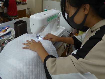 6年生 家庭科〜ナップザック作り〜 公開日 2023/09/22 更新日 2023/09/22 6年生のページ 家庭科の学習はナップザック作りをしています。今日は、ナップザックの脇を縫いました。まち針を使ったり、ミシンを使ったり・・・久しぶりの裁縫は疲れました。