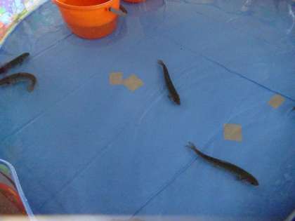 初めて魚をつかむ子どもたちもいましたが、3年生はプールで泳ぐ魚をすべてつかんでいました。