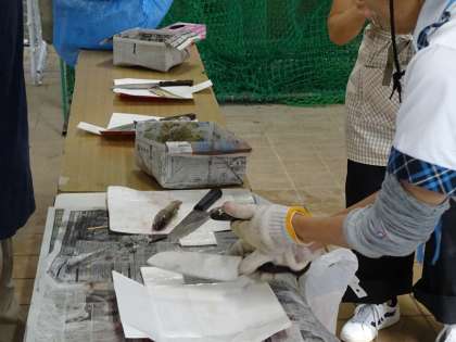 尊い命をいただきます 公開日 2023/09/24 更新日 2023/09/24 学校の様子 生き物をとらえて、調理し、自分の命をつなぐためにいただく。 保護者のかたも一緒に活動していただいたので、今日の夕食の時にでも話題にあげていただければと思います。