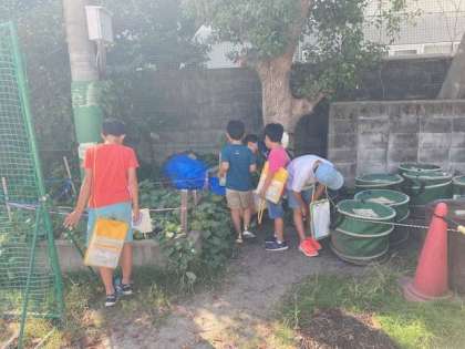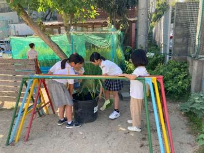 「動物のすみか」の学習をしています。畑の中や、植木鉢の下など、生き物のいそうなところを予想して必死で探していました。どんな生き物に出会えたのでしょうか。