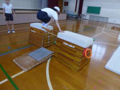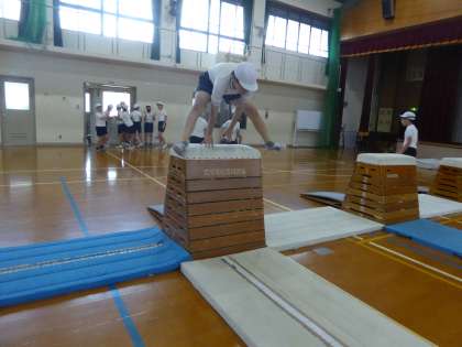 6年生 体育科〜とび箱〜 公開日 2023/10/04 更新日 2023/10/04 6年生のページ とび箱の学習を頑張っています。今日からねらい2の活動も取り入れました。少し頑張ればできそうな技に挑戦しています。