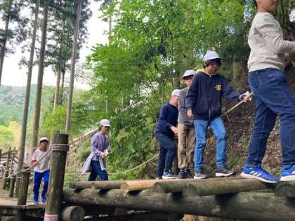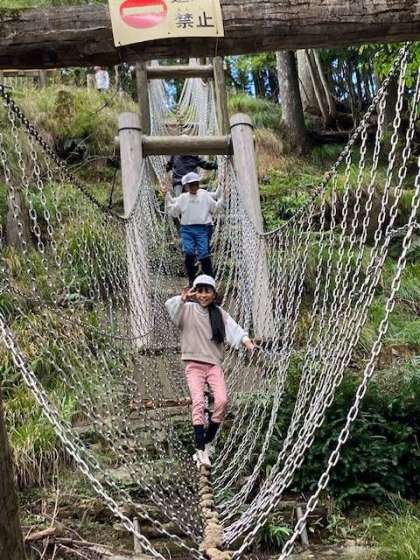 ゴシ谷ハイクの後、午前中できなかった冒険の森で遊ぶことができました。ハイクの疲れを感じさせないほど元気いっぱいです。