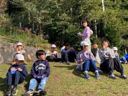 ほっこりとアイスタイムです。日が照ってきて気持ちよく外で食べています。
