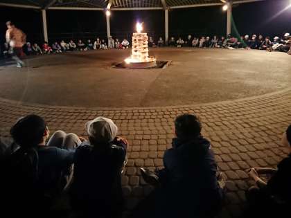 おひさま学級 「花背山の家宿泊学習 キャンプファイヤー」 公開日 2023/10/08 更新日 2023/10/06 おひさま学級 昨夜行われたキャンプファイヤーの様子です。寝る前に、花背の方は雨が降ったようですが、キャンプファイヤー時のお天気は大丈夫だったようです。いよいよ今日は、最終日!野外炊事で、すき焼き風煮をみんなで作ります!学校の給食もすき焼きなので、「一緒だね!」とおひさま学級で学習しているメンバーが嬉しそうに話をしていました。