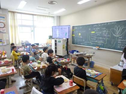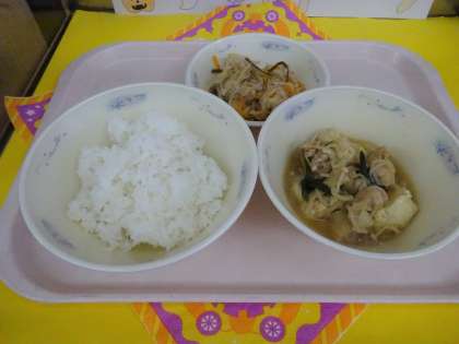 最近すっかり秋らしい気候になりましたが、子どもたちは、かしわのすき焼きを食べ、ほっこり体が温まっていました。鶏肉がたっぷり入っており、青ねぎや玉ねぎの甘みをよく合っていました。