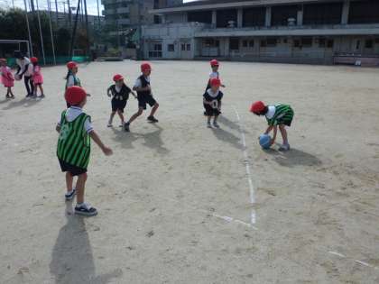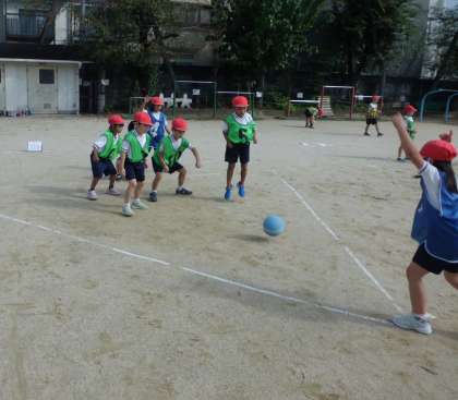 ボールをよく見てよけたり、チームごとに作戦を考えながら、