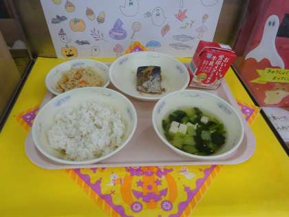 10月16日(月)の給食は、麦ごはん・牛乳・さばのかわり煮・切干大根の煮つけ・すまし汁でした。
