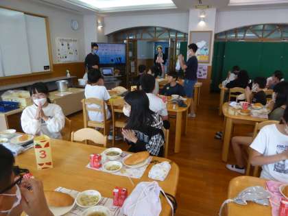 4年ぶりにランチルームで給食を食べました。1つの机でみんなで食べるのも久しぶりでした。「懐かしい」「こうやって食べるの、楽しかった」など、喜んでくれている声が多くてよかったです。