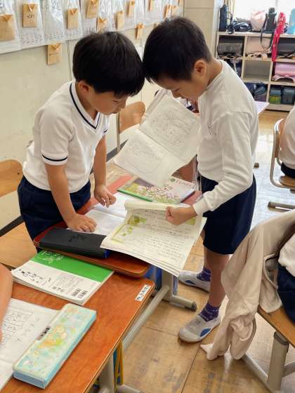 【2年生】音読発表会に向けて 公開日 2023/10/18 更新日 2023/10/18 2年生のページ アーノルド・ローベルの有名な作品 「お手紙」の音読劇をしました。 班ごとに どの場面を読むか 誰がどの部分を読むか どのように読んだら良いかなどを 相談しながら,学習を進めました。