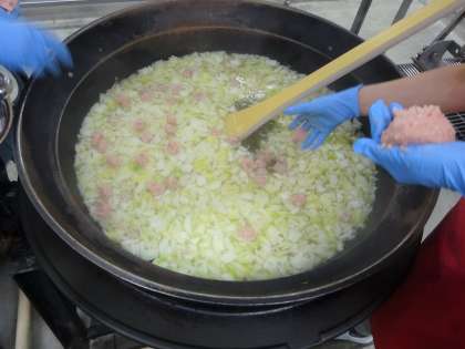 今日の給食は、麦ごはん・牛乳・肉だんごのスープ煮・じゃがいものいためものでした。肉だんごは、豚ひき肉に塩こしょう等をしてよく練って、ひとつずつだんごにしています。旬の白菜もたっぷり入っていました。