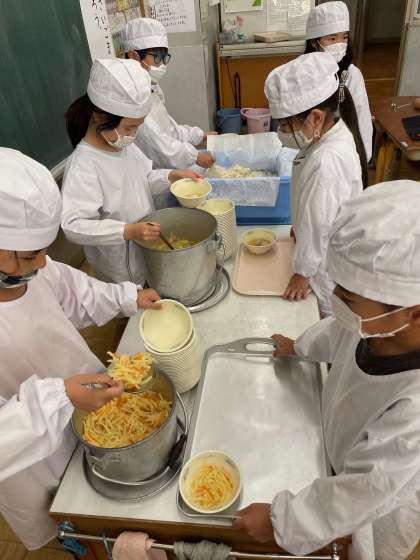 【2年生】少しずつ 公開日 2023/10/20 更新日 2023/10/20 2年生のページ 給食当番で配膳をする姿も 板についてきました。 大おかずと呼ばれる 汁物なども,少しずつ任せています。 どきどきしながら入れていますが, 3年生に向けて少しずつ自分でできることを 増やしてほしいと思っています。