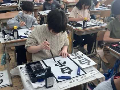 「白」と「雲」の字のバランスを考えながら書きました。心を落ち着かせて、集中して取り組みました。