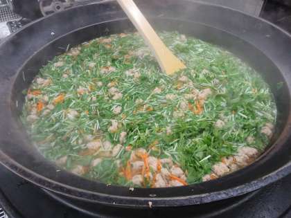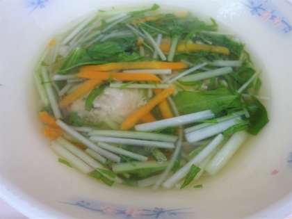 つみれは、鶏ひき肉・まぐろフレーク・ねぎなどを混ぜてよくこねて作っています。ひとつずつつみれにしています。手作りのつみれがやわらかく、水菜のシャキシャキとした食感を楽しむことができました。