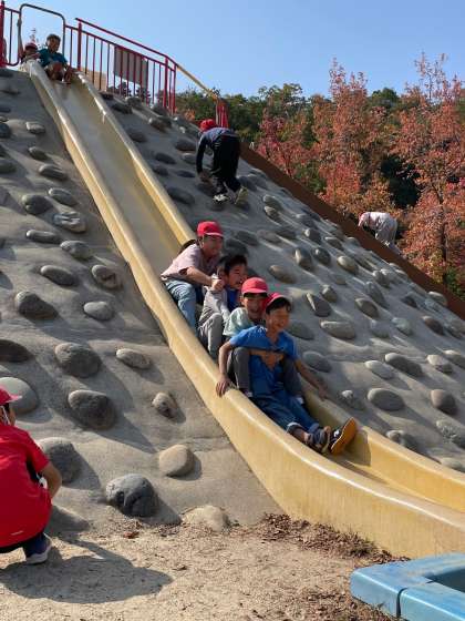 【2年生】秋の校外学習2 公開日 2023/11/03 更新日 2023/11/02 2年生のページ お家の方に用意していただいたお弁当を とてもうれしそうに食べていました。 雲一つない空の下 とても充実した日を過ごすことができました。 たくさん遊んで,たくさん歩きましたので 週末はゆっくりと過ごせると良いですね。