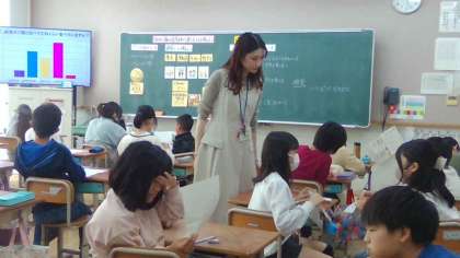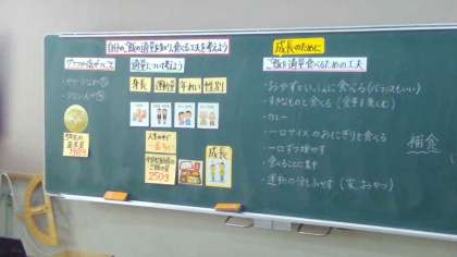 栄養教諭の東先生に来ていただき、栄養指導をしていただきました。成長のために自分がどれくらいご飯を食べなければいけないのかについて学び、給食をしっかりと食べようという気持ちが高まっている様子でした。