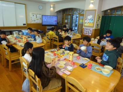この日は、4年2組さんがランチルーム給食でした。クラスの友達との会話も楽しみながら、よく味わって食べられました。