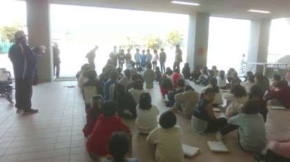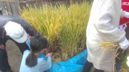 5時間目に、わくわく学習で稲刈りをしました。初めて体験する人も多く、とても楽しそうに取り組んでいました。また、農業に使う器具も見させていただき、興味深々な5年生でした。