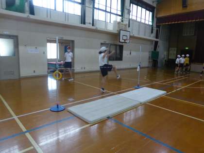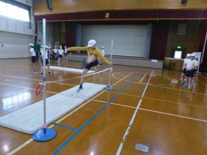 体育の学習は高跳びが始まりました。はさみ跳びが上手になるようにがんばっています。