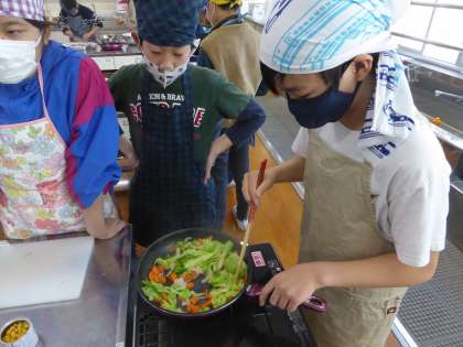 6年生 家庭科〜まかせてね 今日の食事〜 公開日 2023/11/15 更新日 2023/11/15 6年生のページ 今日は2組が調理実習でした。グループで協力して切ったり、炒めたり・・・ 手際よく調理ができました。