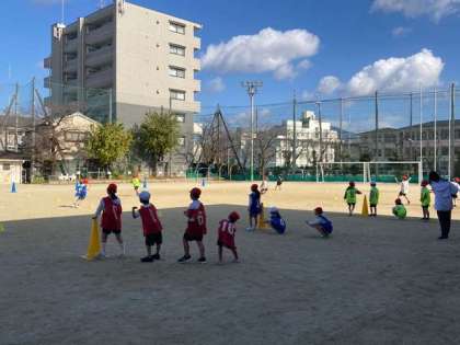チームに分かれてリレーの学習をしています。元気いっぱい走ったり応援したりして頑張っていました。