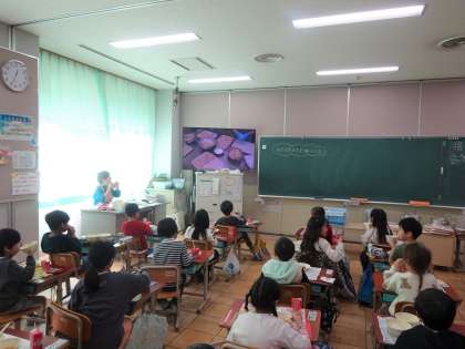 がんもどきは、鶏ひき肉や野菜、とうふ、おからパウダーなどを混ぜて、調理員さんがひとつひとつ丸めて作っています。丸めてから油で揚げています。ふわっとした食感が、手作りならではです。子どもたちは、その調理の様子をムービーで見て、ありがとうの気持ちを込めて食べられていました。