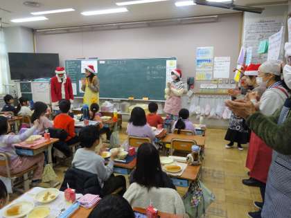 今日は特別にチョコレートケーキのデザートが教室に届けられました。子どもたちも待ち遠しくしていたようで、喜ぶ声がたくさんありました。にっこり笑顔がたくさん見られた給食時間でした。