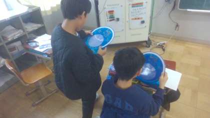 4年 理科 「星(冬)」 公開日 2024/01/11 更新日 2024/01/11 4年生のページ 理科の学習では、冬の星座の学習をしています。星座早見表を使ってオリオン座を見つけることができました。夜観察する時は、安全に気を付けながら観察をしましょう。