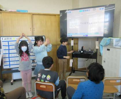 国語の学習で「していることば(動詞)を見つけてあらわそう!」の学習を行っています。自分たちで動詞の動画を作り、ロイロノートで編集してからみんなの前で発表を行います。そして、動詞を入れた文を一人ずつ作り、発表する学習を継続的に取り組んでいます。継続して学習することで、自分たちで考え、学習する姿が増えています。この学習も、あと少しで終わりですので、さびしいですが、ゴールに向かって、みんなと一緒に楽しく学習していきたいです!