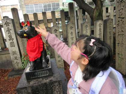 2月1日(木)に、おひさま学級の校外学習(小さな巨匠展鑑賞、満足稲荷神社、お昼ご飯を自分たちで買う、買い物学習、岡崎公園、平安神宮、みやこめっせ、ロームシアター京都見学)を行いました。自分たちで調べて、行きたい場所を考え、行き方や所要時間等も自分たちで調べながら学習を進めました。写真は、満足稲荷神社を見学している所です。豊臣秀吉が関係していることや狐や岩神さんがあるということが見学をしてわかりました。