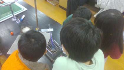 理科の学習では、理科室で水の温まり方について学習をしました。子どもたちは「上から温まっている」「火に近いところからではなかった」など予想していたことと違う結果で驚いている姿が見られました。