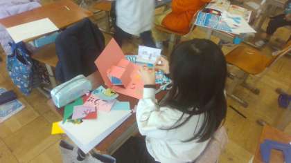 図画工作科の学習では、送りたい人に向けてカードを作っています。子どもたちはどんな人にどのような気持ちを送るか考えながら作る姿が見られました。完成が楽しみですね。