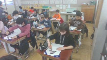 4年生 書写「平和」 公開日 2024/02/07 更新日 2024/02/07 4年生のページ 書写の学習では、学習のまとめで「平和」の文字を書いています。1年間、学習で身につけたことを生かして熱心に落ち着いて書く姿が見られました。