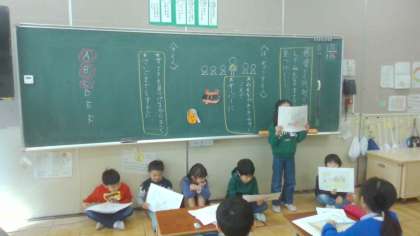 【1年】たぬきの糸車の音読が発表をしました。 公開日 2024/02/13 更新日 2024/02/13 1年生のページ たぬきの糸車の音読発表会をしました。みんなぞれぞれに読み方の工夫をしていて、聞いていてとても楽しめました。聞いている子たちも、お話に入り込んで聞いていました。