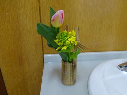 毎月、学校にお花をいけてくださるお花の先生が来られました。