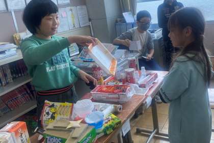 廃材をもとに、いろいろな物を作ったりお店の開店に向けて準備を行ったりしてきました。今日は、お店を開いて、1年生と2年生を招待しました。おひさま学級の6年生は、交流クラスの友だちと射的屋さんを一緒に行いました。1年生や2年生が喜ぶような工夫や優しさがつまった時間となり、みんな楽しそうでした!