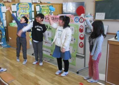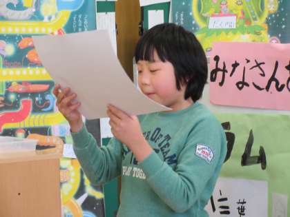 学習の後半は、2・4・5年生でこれからのおひさま学級についての発表を行いました。それぞれが最後に花吹雪やお花、応援うちわなどで、盛り上げました。6年生は、卒業文集の発表を行いました。しっかりと最後までいい姿勢で発表できていて、とても立派な姿が見られ、うれしかったです。終わりの言葉では、6年生がこれまでの6年間のあゆみを言葉にした発表があり、感動しました。最後まで子どもたちを温かく見守りながら一緒に楽しんでくださり、ありがとうございました。