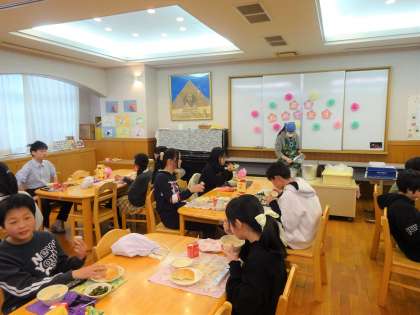 調理員さんの手作りのルーが、とろっとまろやかで美味しく食べられました。じゃがいもも、ホクホクしていておいしかったようでした。今日は、6年3組さんがランチルームで楽しく食べました。和やかな雰囲気の中、食べられました。今日もごちそうさまでした♪