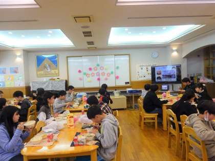 今日は、6年2組さんがランチルーム給食でした。教室とは違った雰囲気の中、友達と楽しく食べられました。