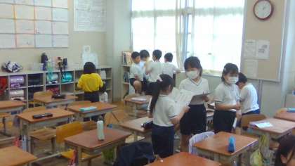 外国語活動 Unit2「How are you?」 公開日 2024/05/09 更新日 2024/05/09 3年生のページ ジェスチャーをつけながら、友だちと挨拶をし合う学習をしました。子どもたちは、外国語を使って友だちと表情豊かに交流することができました。