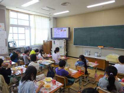 今日の給食は、ミルクコッペパン・牛乳・ベーコンとポテトの変わりオムレツ・トマトスープでした。