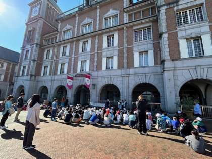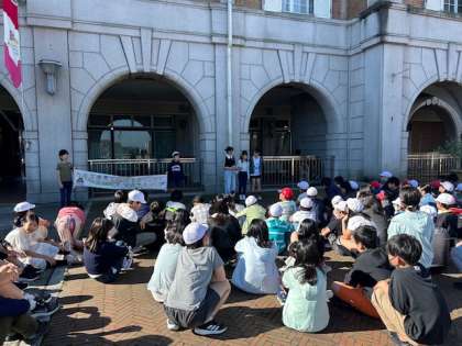 退館式を行なっています。式の後は、キッザニア甲子園へ向かいます。