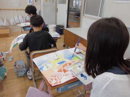 図工では「あの時 あの場所 わたしの思い」という単元の学習で絵を描いています。