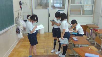 3年生 外国語活動「Unit2 How are you?] 公開日 2024/05/21 更新日 2024/05/21 3年生のページ 表情やジェスチャーを付けて、相手に伝わるように工夫しながら、英語で挨拶をしたり、答えたりする学習をしました。