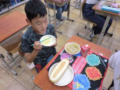 今日は手作り肉団子でした。ふわふわとした食感としょうがの優しい味に、子どもたちも大喜び。うれしそうに食べていました。