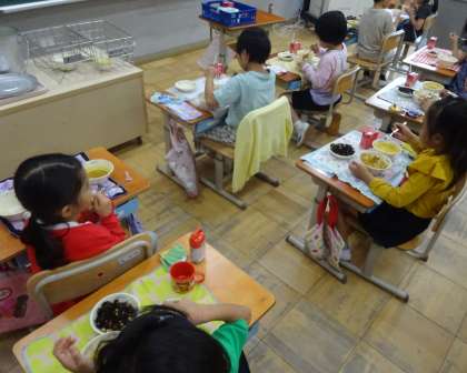 ひじきのソテーには、ミックスビーンズが入っていました。いろんな豆の違いも感じながら食べていました。
